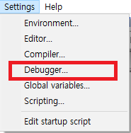 당황하지 마시고 메뉴에서 Settings->debugger 을 선택 합니다.