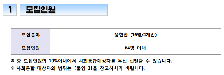 모집인원은 64명 이내 16명 1개반으로 4개반을 모집하고 있습니다.