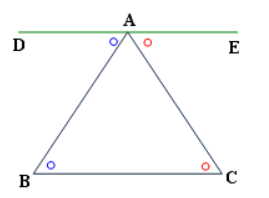 따라서 DAB 와 ABC의 엇각의 크기가 같고 EAC와 ACB의 엇각의 크기는 같기 때문에...