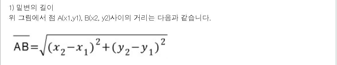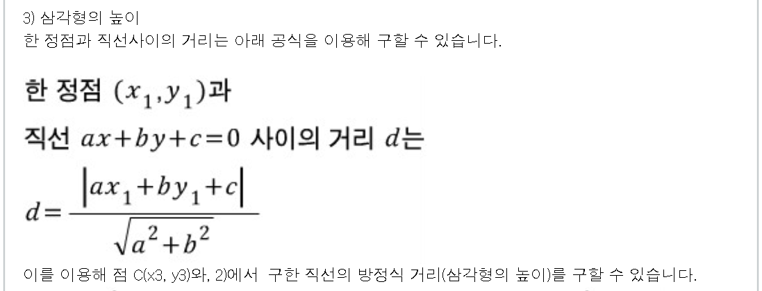 - 각을 이용하여 구하는 공식 중에 다음과 같은 공식이 있다.(단, 정보올림피아드 문제 유형에는 없다.)