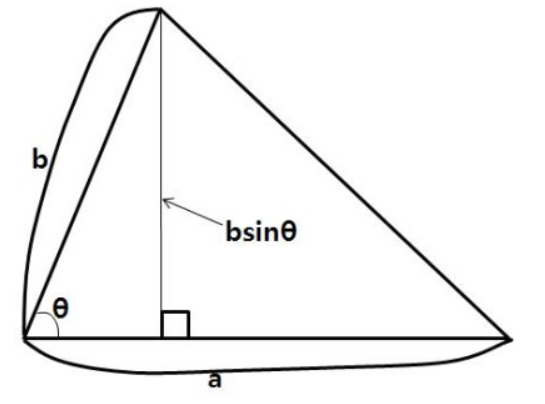 위의 그림에서 높이를 bsin(θ) 로 표현 할 수 있다.