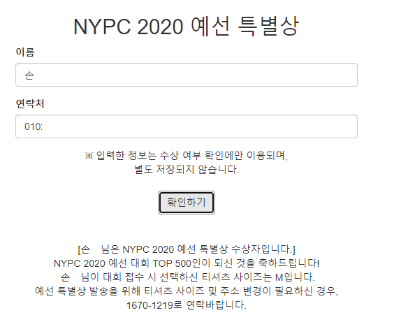 2019년 세상을 바꾸는 코딩 NYPC 입상내역(특별상) - https://wondangcom.com/999
