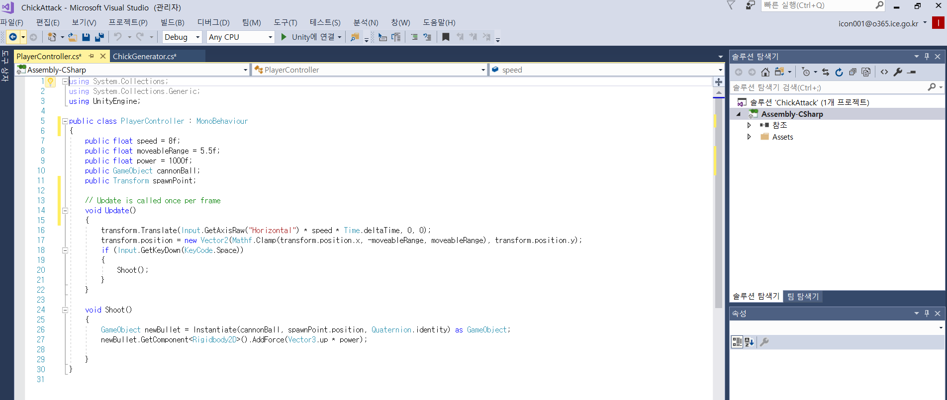 4장에서는 2D게임 만들기로 굴러 떨어지는 병아리 구슬을 대포로 맞히는 게임을 만들면서 플레이어 배치하고 제어하는 방법에서 스크립트를 이용하여 코딩하는 방법들을 배워 봅니다.