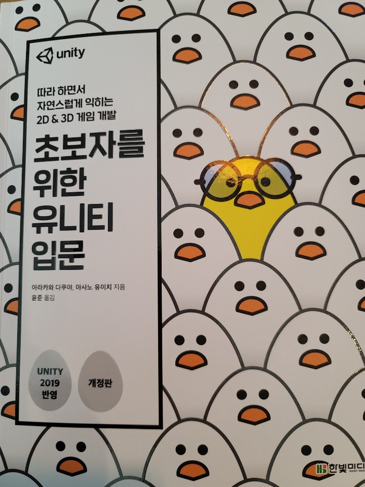 "초보자를 위한 유니티 입문"은 유니티 최근 버젼인 유니티 2019를 반영하여 개정되어 있어서(현재 유니티 버젼은 유니티 2019.4 버젼입니다.) 프로그램 설치부터 따라서 연습을 할 수가 있도록 구성이 되어 있어서 초보자에게 딱 적합한 책입니다.