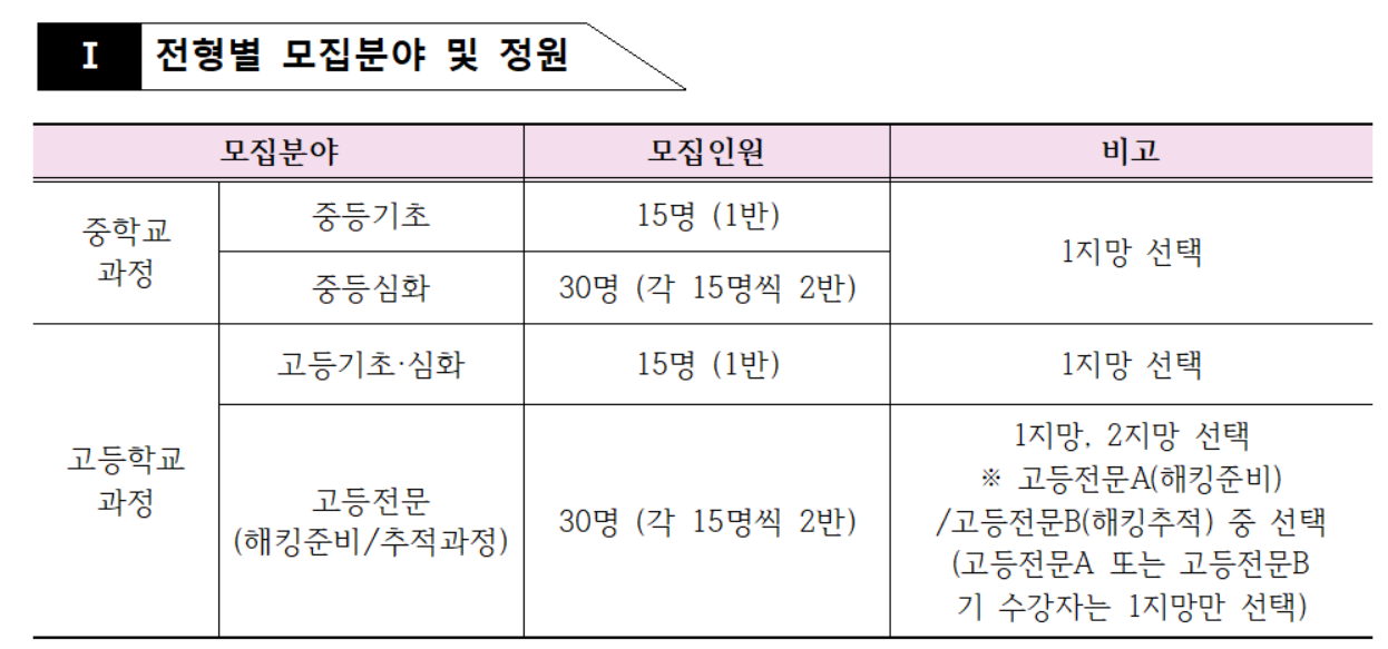 중학교 과정과 고등학교 과정이 개설되어 있으므로 관심이 있는 학생들은 도전해 보면 좋을것 같아요.