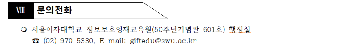 정보보호영재교육원 관련해서 문의하실 분은 02-970-5330 으로 문의하시면 됩니다.