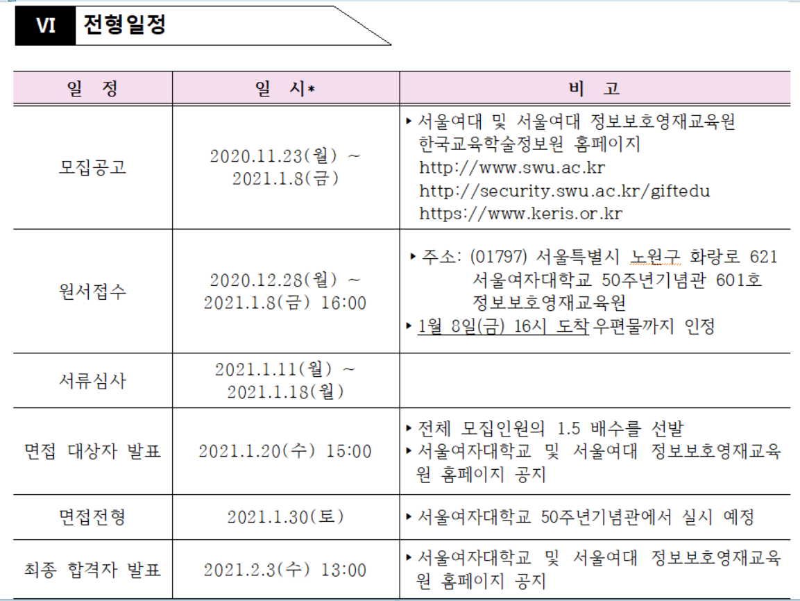 오늘은 정보보호영재교육원에서 교육생을 모집하고 있는데 인천권역에서 지원을 할 수 있는 서울여자대학교 정보보호 영재교육원 학생선발 모집 요강을 살펴 보겠습니다.