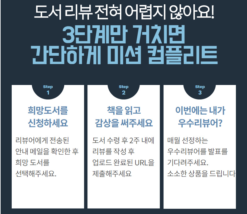 도서 수령후 2주 이내에 리뷰를 작성해 주신 후 업로드 완료된 URL을 제출해 주시기만 하면 됩니다.