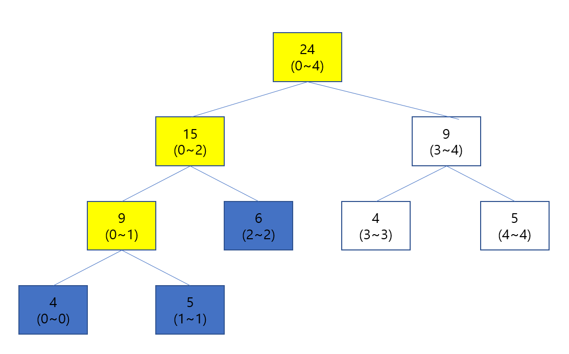 SegTree[cur].sum = SegTree[cur*2].sum + SegTree[cur*2 + 1].sum; ///자식의 합을 누적