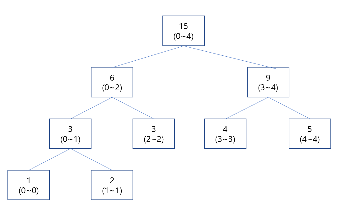 배열 {1,2,3,4,5} 가 있는 구간합의 예를 살펴 봅니다.