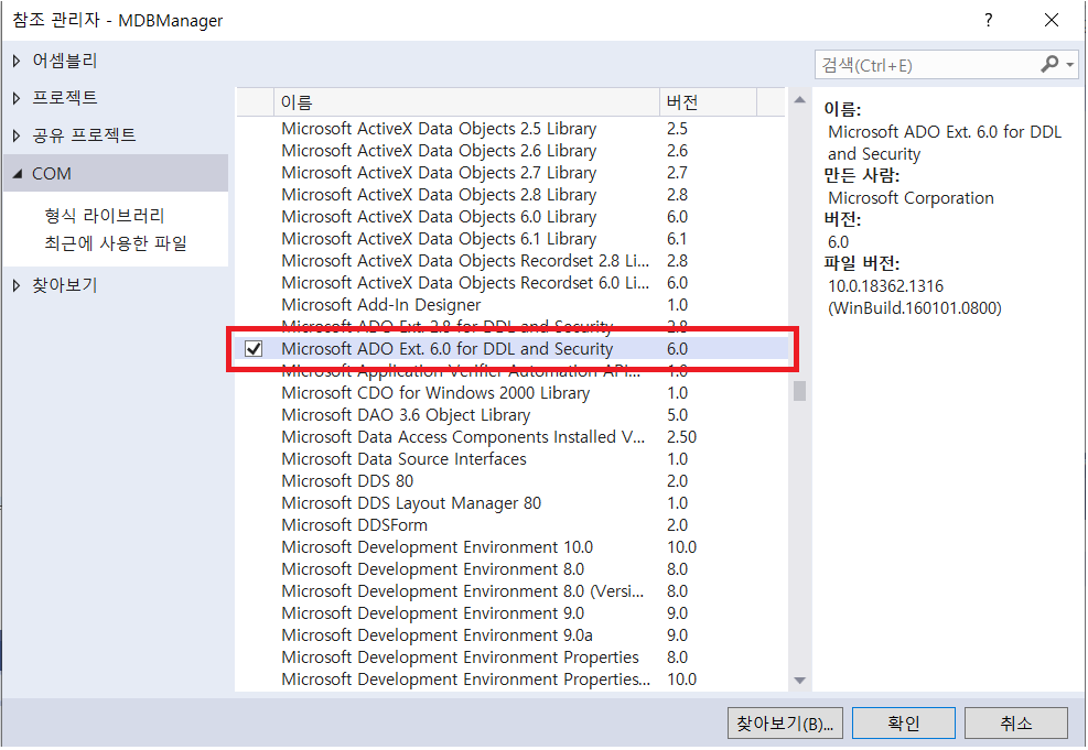 - MDB(Access DataBase) 파일이 없을때 생성해 보기
