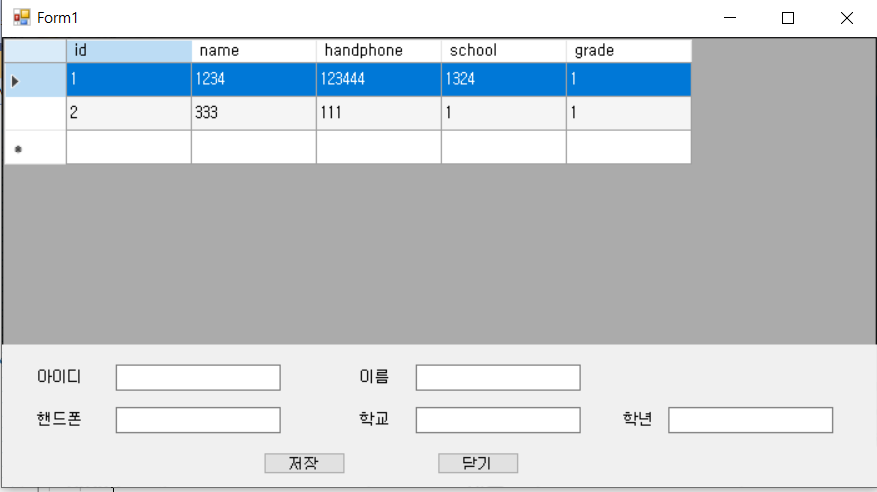textbox : 4개 - 아이디/이름/핸드폰/학교/학년