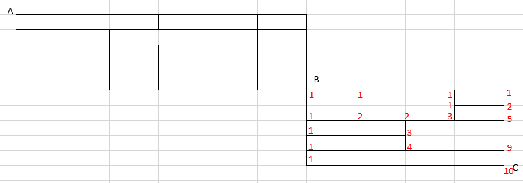 B에서 C로 가는 최단 경로이 경우의 수는 10입니다.