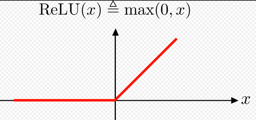 - ReLU는 입력값이 0보다 작으면 0으로 0보다 크면 입력값 그대로 출력하는 함수 ( f(x) = max(0,x) )
