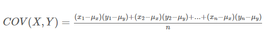 공분산의 값이 양수라면 x가 평균보다 클때 y가 평균보다 크거나, x가 평균보다 작을때 y가 평균보다 작은 경우가 많다고 할 수 있습니다.