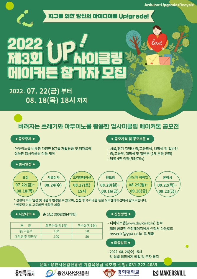 버려지는 쓰레기와 아두이노를 활용한 업사이클링 메이커톤 공모전 안내입니다.