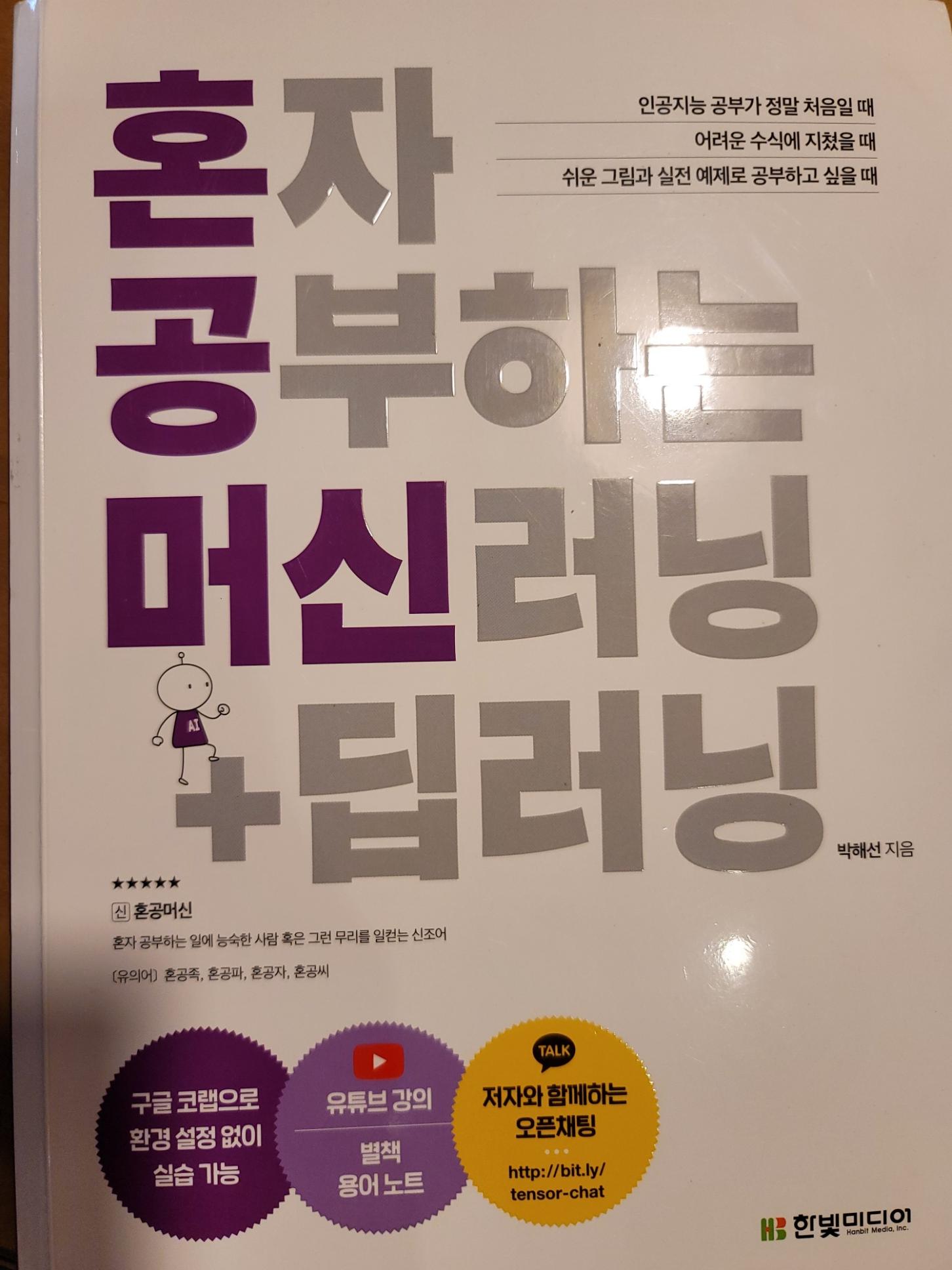 박해선님이 많은 머신러닝 관련한 책을 번역하시고 또한 책을 쓰시면서 입문자의 가려운 부분을 정확하게 짚어 내신 책인 것 같은 생각이 드네요.