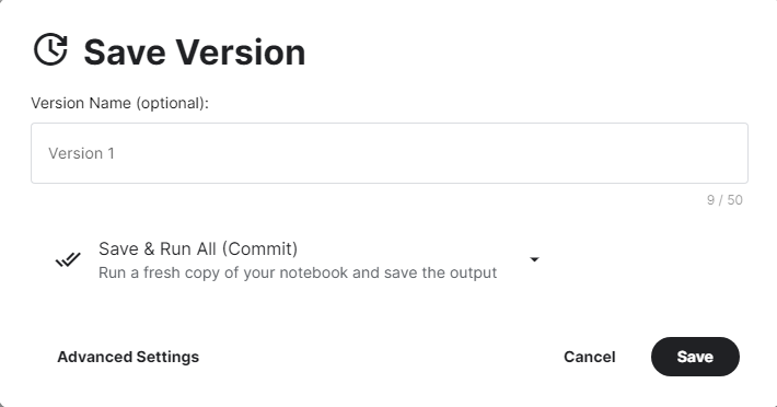 생성된 submission.csv 파일을 제출하려면 먼저 커밋(commit)부터 해야 한다.