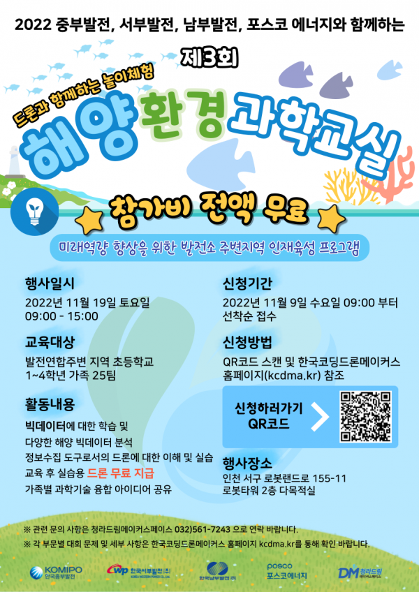 중부발전,서부발전,남부발전,포스코 에너지와 함께하는 2022 해양 환경 과학교실을 모집하고 있습니다.