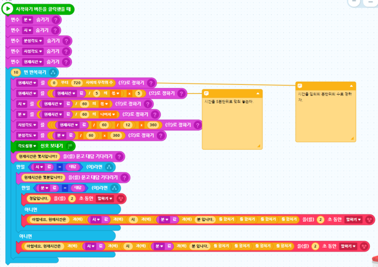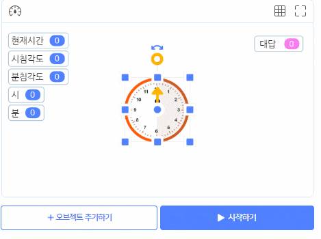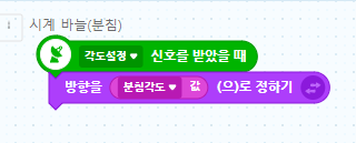 - 각도설정 신호 보내기를 하여 분침과 시침이 현재 각도로 설정을 하도록 한다.