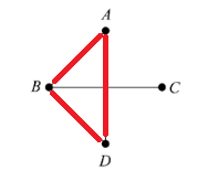 위와 같이 V={A,B,C,D},E={(A,B),(B,C),(B,D),(A,D)} 와 같은 G=(V,E)로 되어 있는 그래프와