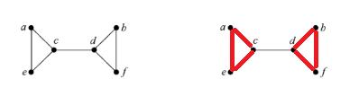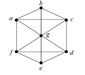 a 또는 d에서 시작해 모든 모서리를 한번씩 거쳐서 다른 d 또는 a 에 도착하는 오일러 경로를 가지는 그래프 이지만 오일러 순환은 아니다.