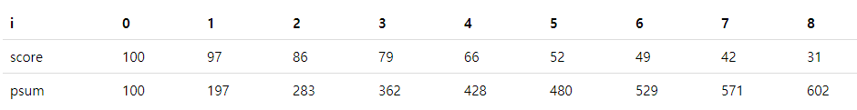 N명의 시험 성적을 내림차순으로 정렬해 둔 score[] 가 있다고 하면 여기서 우리는 a등에서 b등까지의 평균을 구하려고 한다.