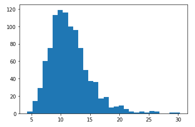 plt.hist(sample_means, bins=30)