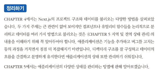 또한 다음과 같이 한Chater 가 끝나면 그 장에서 배웠던 내용을 정리하면서 다음 장에서 배울 내용과의 연계성 들에 대해 설명해 주고 있어서 다시 한번 정리를 할 수 있도록 구성이 되어 있습니다.