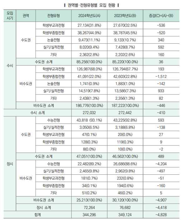 2024학년도 대입전형 특징 요약