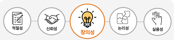 창의성(60%),적절성(10%),논리성(10%),신뢰성(10%),실용성(10%)