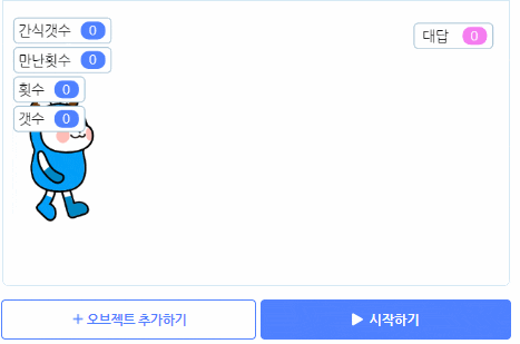 4. 대답을 만난횟수 라는 변수를 만들어 저장합니다.