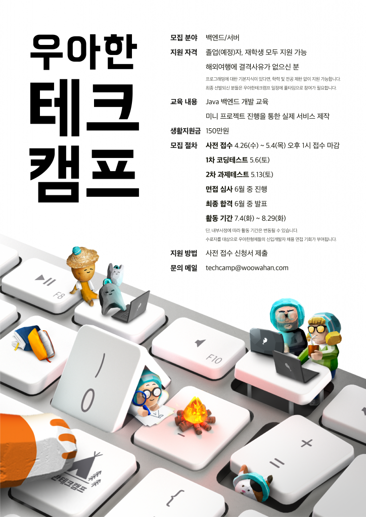 우아한 형제들에서 운영하는 우아한테크 캠프 6기 모집 소식이 있어서 전해 드립니다.
