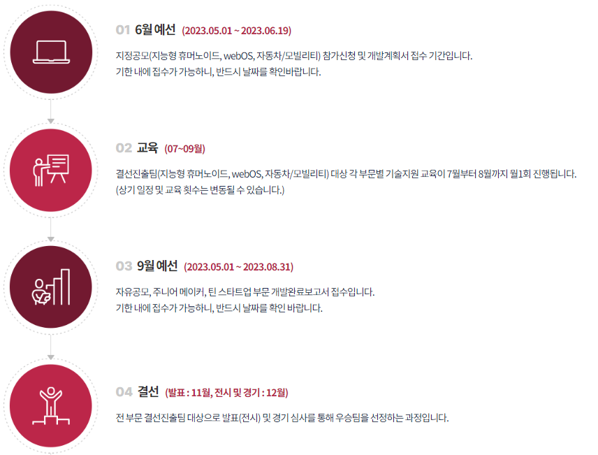 5월 1일부터 6월 19일까지 참가신청서 및 개발 계획서 접수후