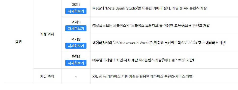 관심 있는 분들은 홈페이지( https://metaversedev.kr/info ) 를 참고하셔서 신청하시면 됩니다.