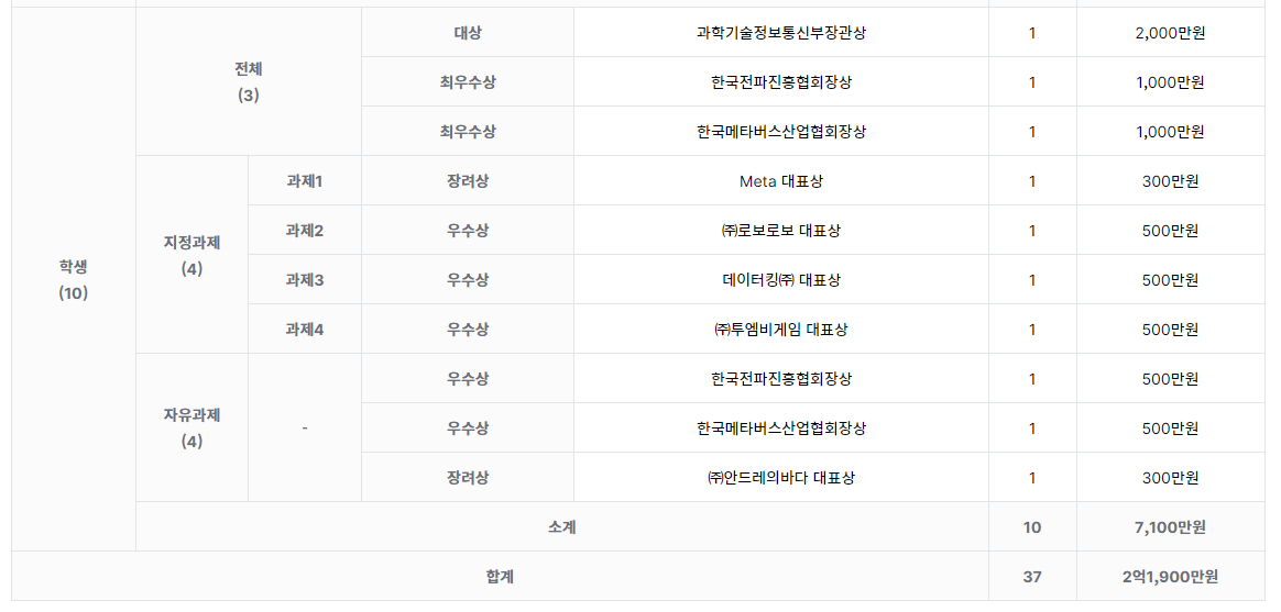 - 접수방법 : 메타버스 개발자 경진대회 홈페이지 ‘온라인 접수’