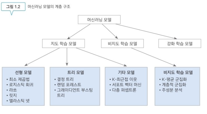 대부분의 책에서 분류문제와 회귀문제로 나누어서 설명하는 것과 다르게 이 책은 선형모델,트리모델, 그외의 모델과 같이 분류를 하였습니다.