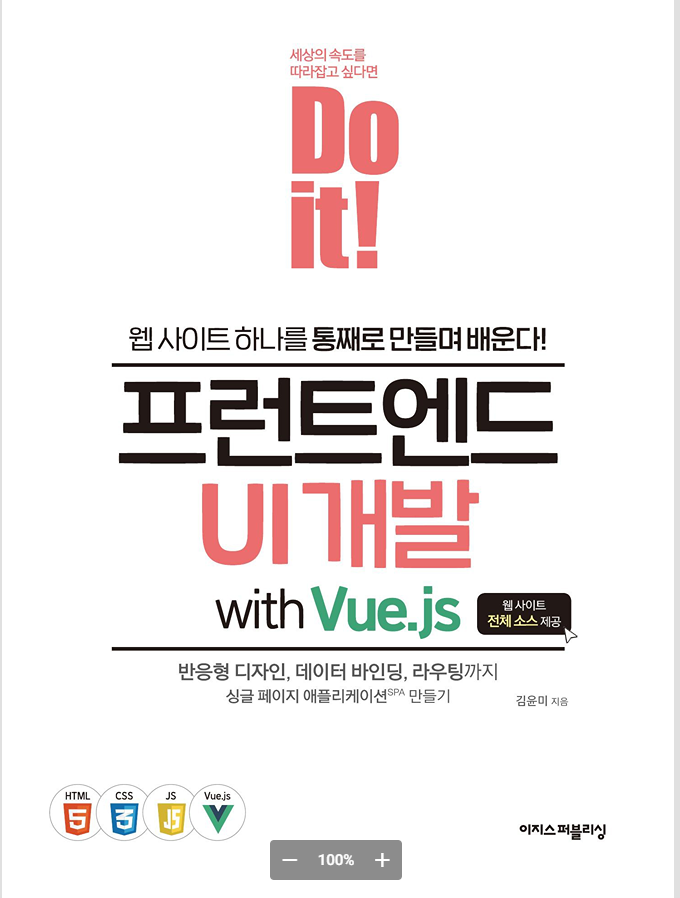 이 책은 html,css,javascript에 대한 이해가 부족했던 독자들을 위해 초반에 html,css,javascript에 대해서 함축적으로 요약 형식으로 정리를 해 주고 하나의 웹페이지를 vue.js 를 활용해서 만드는 방법들을 살펴 보게 된다.