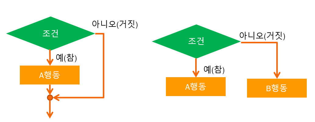 - 만약 비가 오면 우산을 쓴다. 아니라면 우산을 집에 두고 간다 와 같이 판단하는 문제들~