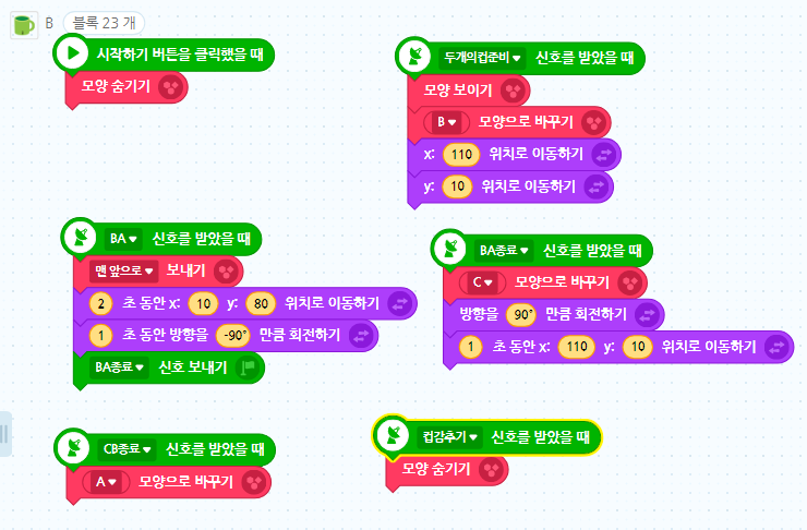 이렇게 A,B 두개의 컵의 내용물을 변경하는 순서를 잘 기억하면 변수의 값을 쉽게 바꿀 수 있습니다.