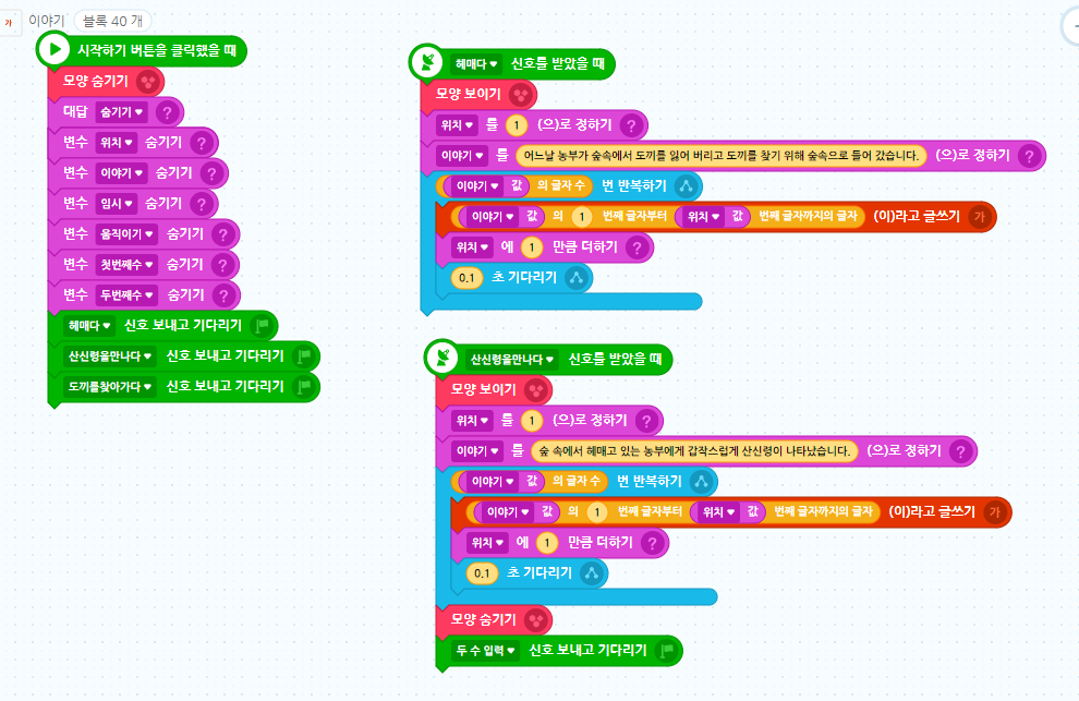 이야기 : 글상자에 출력할 이야기를 담을 변수