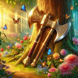농부는 산신령의 말을 믿고 숫자를 하나씩 외치며 나무들을 찾아갔습니다. 그리고 그곳에는 잃어버린 도끼가 놓여 있었습니다.