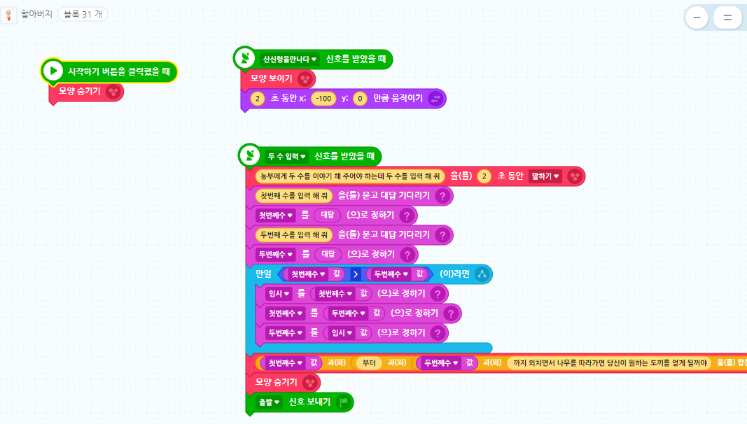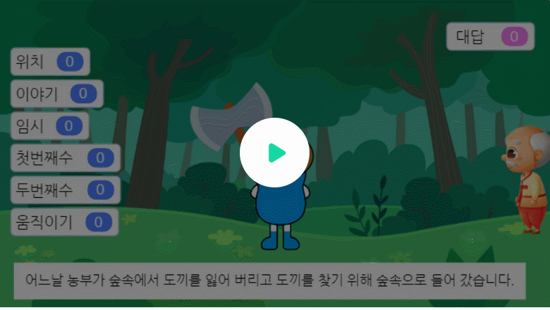 출발 : 산신령이 이야기가 끝나면 농부에게 출발하라는 신호
