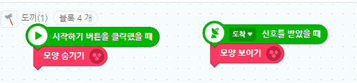 시작할때 모양을 숨겼다가 도착신호를 받으면 모양을 보여준다.
