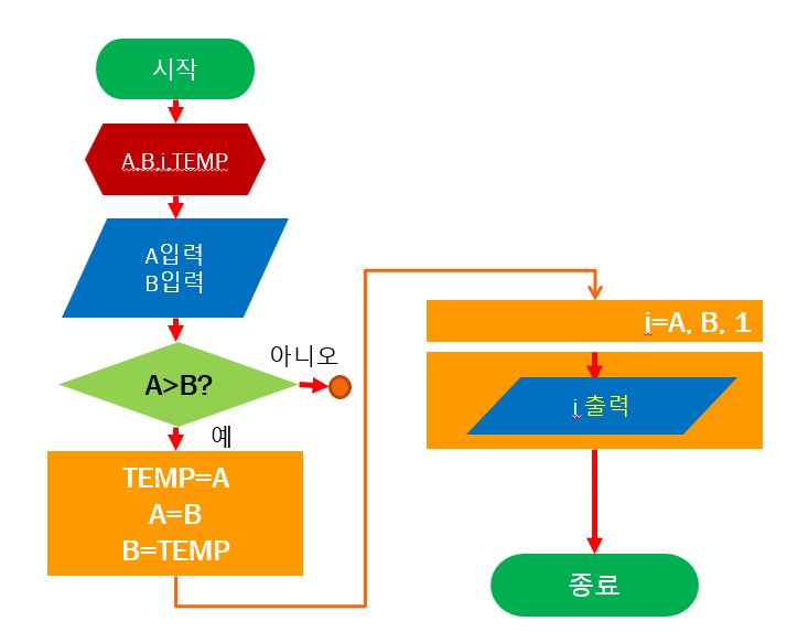 두 수 입력 신호를 받으면 유저에게 두 수를 입력 받아 만약 첫번째수가 두번째 수보다 더 크다면 서로 교환 한 후 출발 신호 보내기