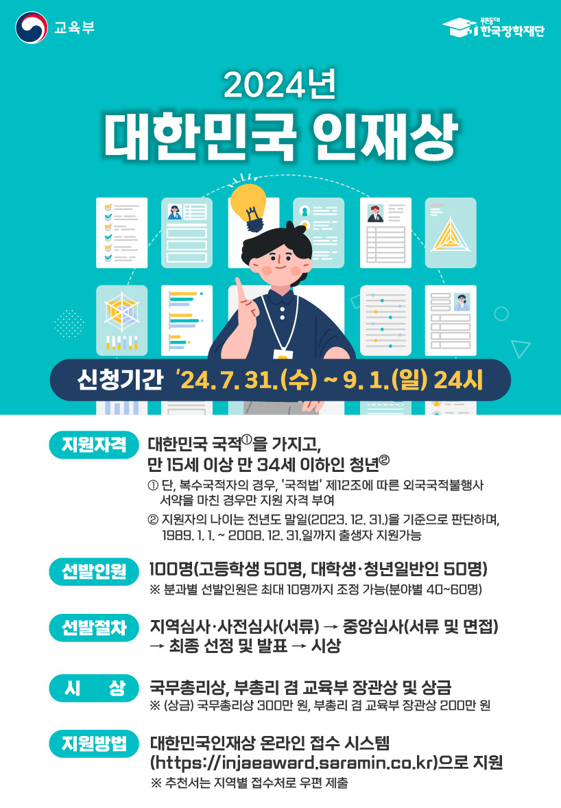 2024년 대한민국 인재상 온라인 접수 중입니다.