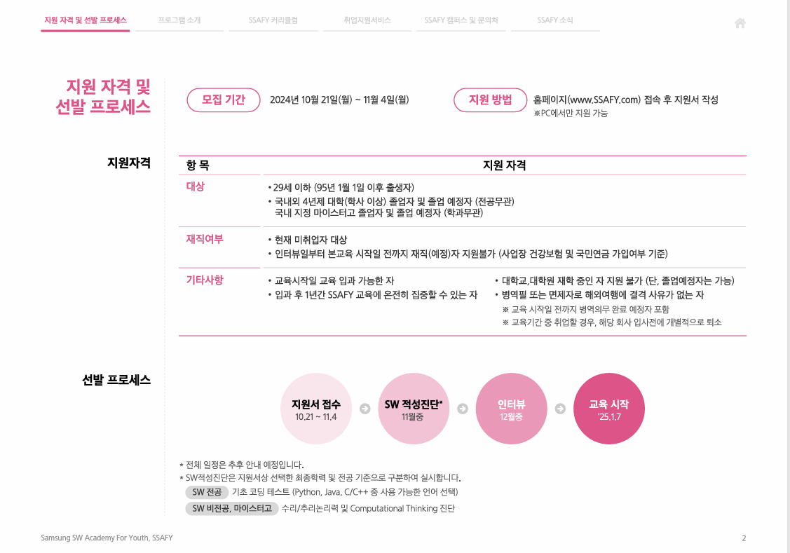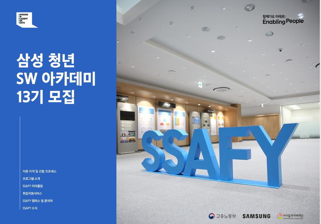 자세한 내용은 홈페이지 ( 삼성 청년 SW 아카데미 (ssafy.com)) 를 참고 하시기 바랍니다.