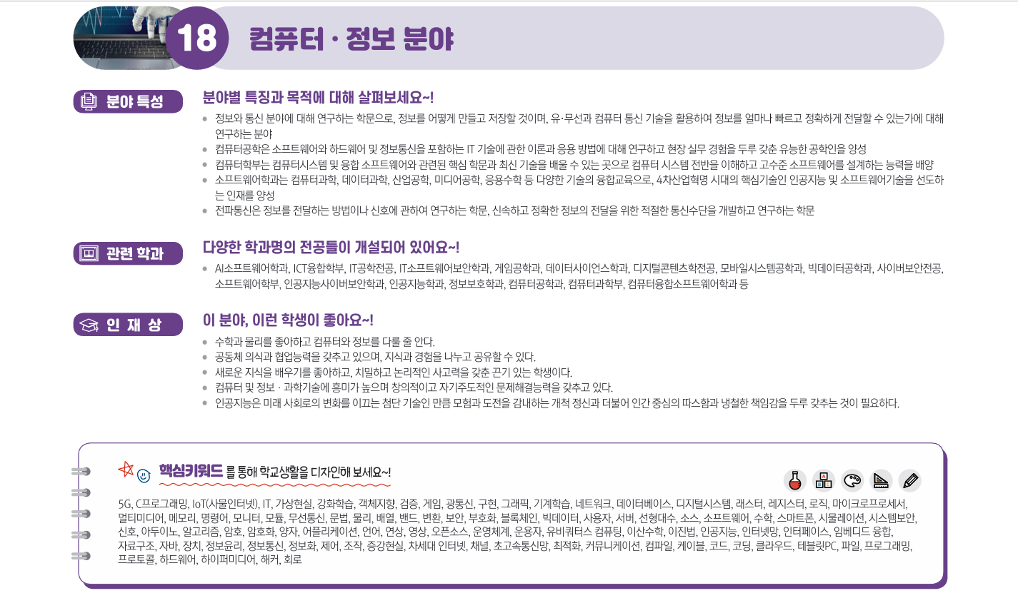 인천교육청에서 나온 각 분야별 학생부 키워드 목록 중에서 컴퓨터 정보분야만 캡쳐해 보았습니다.