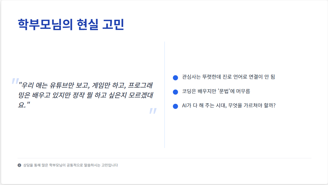 학부모님들의 가장 큰 걱정: "AI가 다 하는데 프로그래밍을 배워서 뭐 하나요?"