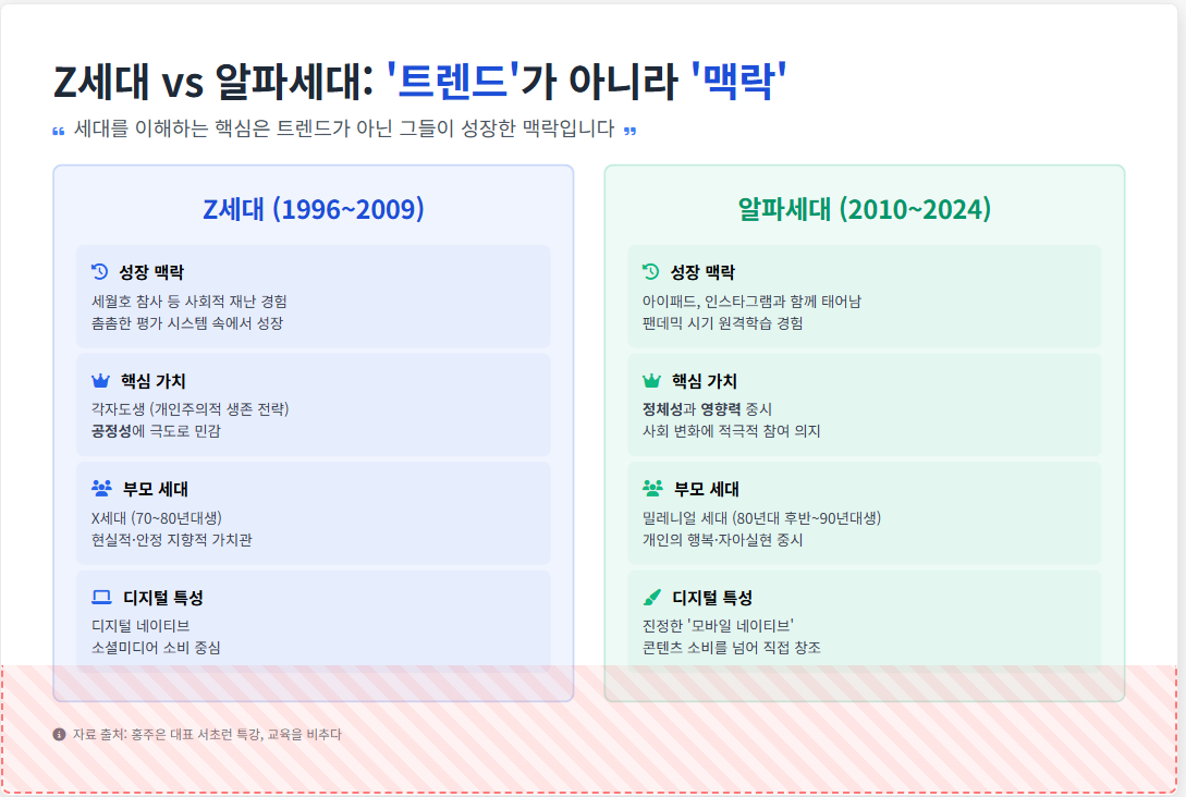 홍주은 대표는 세대를 구분하는 핵심은 '트렌드'가 아니라 그들이 성장한 '맥락'이라고 강조합니다.